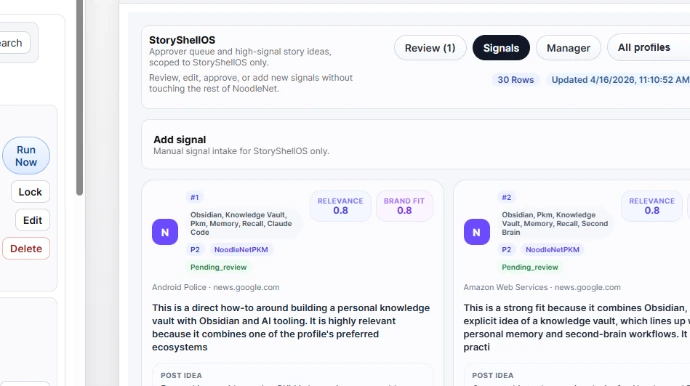 His job lives inside Signals—one of the apps I built inside the NoodleNet Professional AIOS ecosystem.